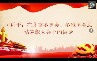 杨斌同志表示:“伟大的事业孕育伟大的精神,伟大的精神推进伟大的事业”,正如习近平总书记在北京冬奥会残奥会总结表彰大会上的讲话所说,双奥会的顺利举办是全党全国各族人民共同努力的结果。而“胸怀大局、自信开放、迎难而上、追求卓越、共创未来”的冬奥精神,是我们的宝贵财富,身处百年未有之大变局的我们,要发扬北京冬奥精神,向着实现第二个百年奋斗目标奋勇前进,向着实现中华民族伟大复兴的中国梦奋勇前进!”