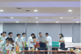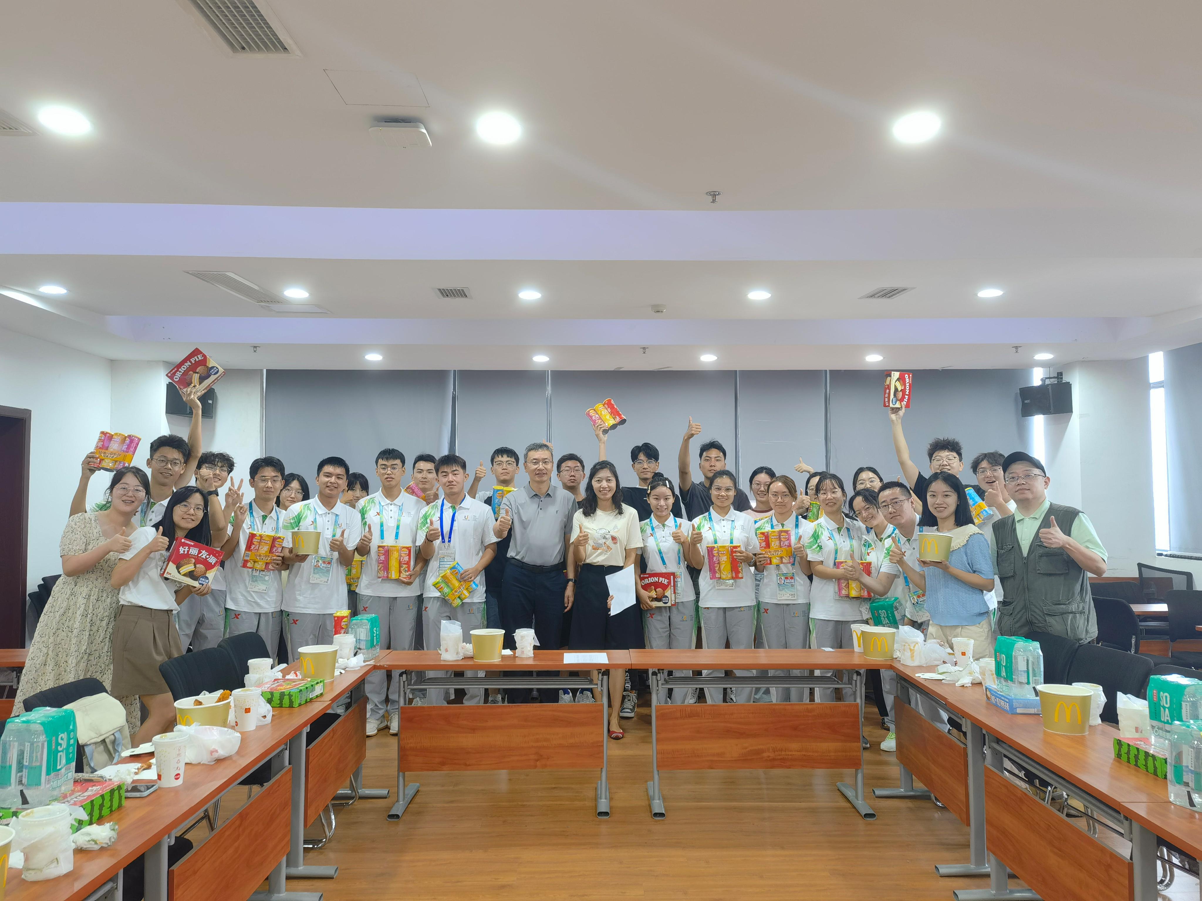 725日下午Fun88乐天堂 党委书记王斌党委副书记谢力一同到电气馆832看望我院身处大运会一线的师生代表和他们亲切交流了解到岗工作生活情况随后共进晚餐并现场发放零食大礼包。