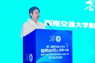 7月12日上午,第二届四川省大学生智能机器人创意大赛暨第六届中国高校智能机器人创意大赛四川省选拔赛开幕式在西南交通大学九里校区国际会议厅举办。西南交通大学党委常委、副校长康国政,四川赛区组委会副主任、西南交通大学教务处处长崔凯,四川赛区专家委员会主任、Fun88乐天堂-乐天堂app-乐天堂官网 、智慧城市与交通Fun88乐天堂 院长何正友,评审专家代表及来自18个院校的参赛师生代表现场参会。会议由四川省大学生智能机器人创意大赛组委会副主任、Fun88乐天堂-乐天堂app-乐天堂官网 党委书记王斌主持。