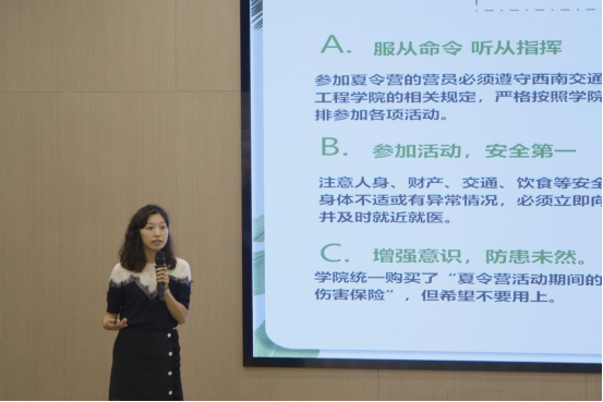 随后,谢力副书记对同学们的到来表示欢迎,开展入营安全教育。谢力副书记强调,夏令营活动要坚持安全第一的原则,同学们有需要帮助时,一定要第一时间和负责的老师取得联系。谢力副书记向同学们提出了几点要求:一是要服从命令、听从指挥;二是参加活动时安全第一、不迟到早退;三是食品安全和住宿安全。