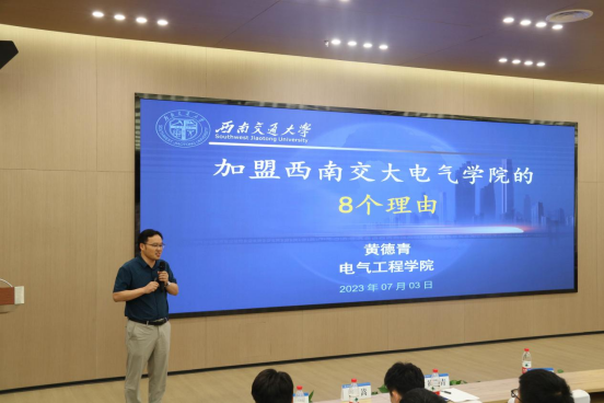院长助理黄德青教授作报告。黄德青教授首先向同学们介绍了自己的求学历程,分享了自己的人生格言。随后阐述了选择Fun88乐天堂-乐天堂app-乐天堂官网 的八个理由,希望同学们来到Fun88乐天堂-乐天堂app-乐天堂官网 攻读研究生。最后,黄德青教授寄语同学们能够万事如愿,当遇到挫折时,一定要坚强勇敢。
