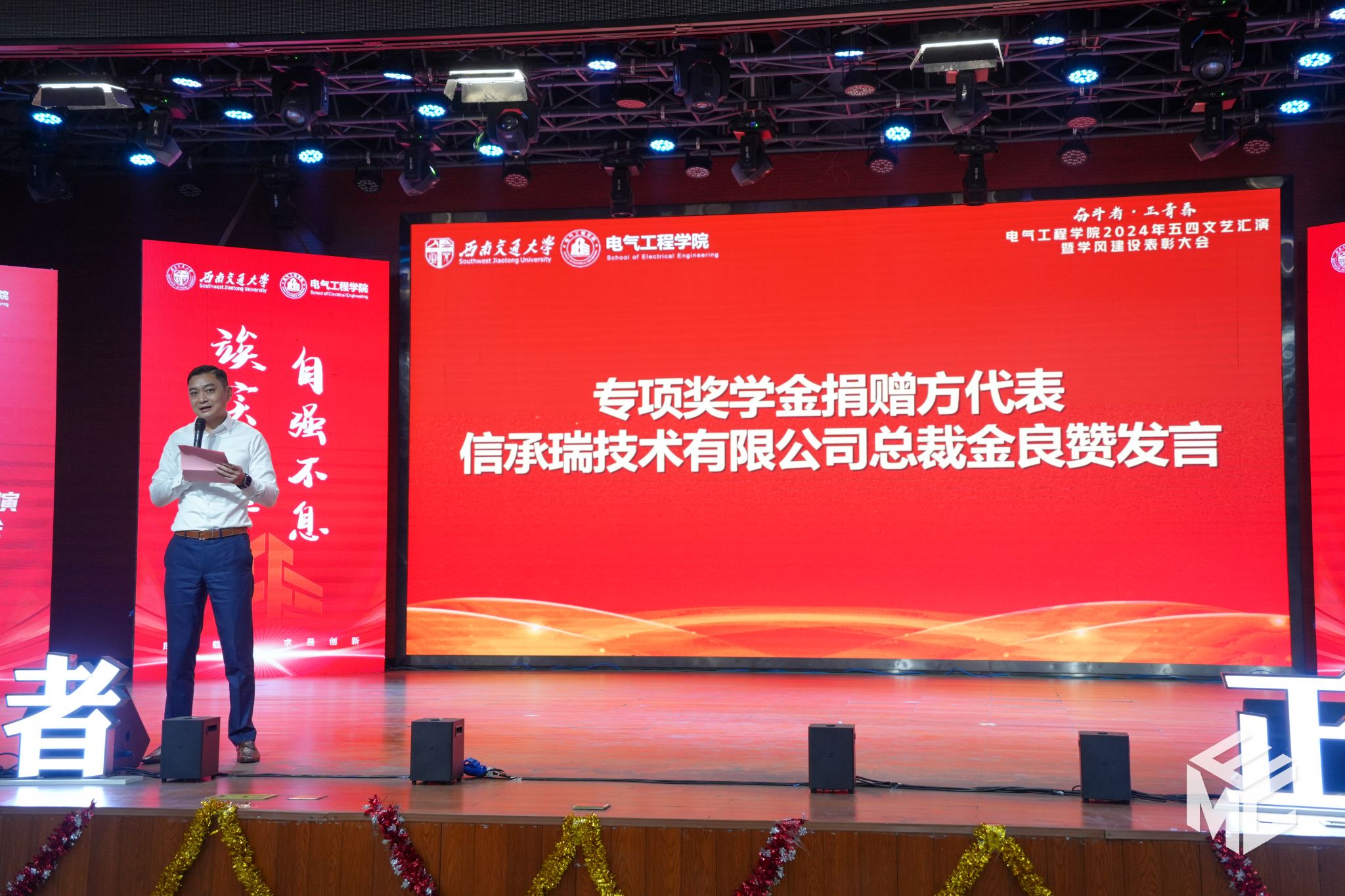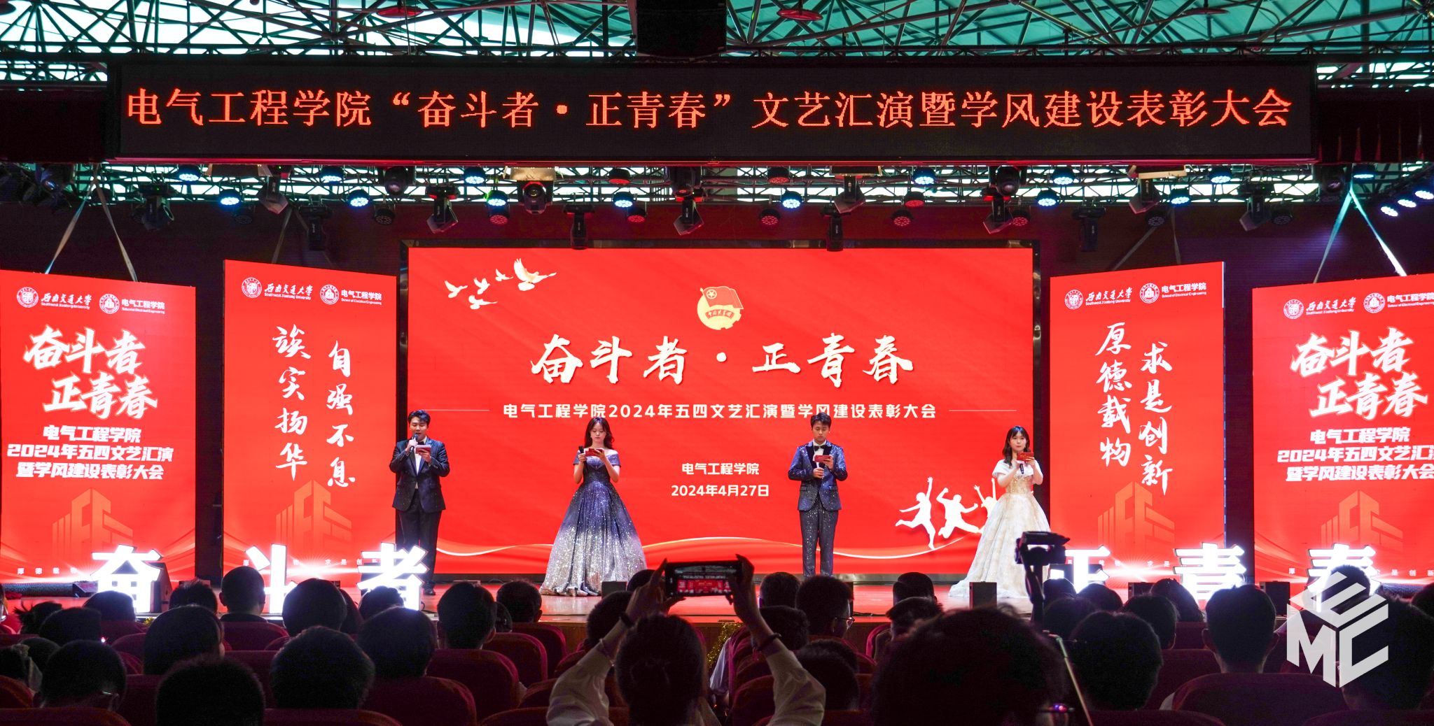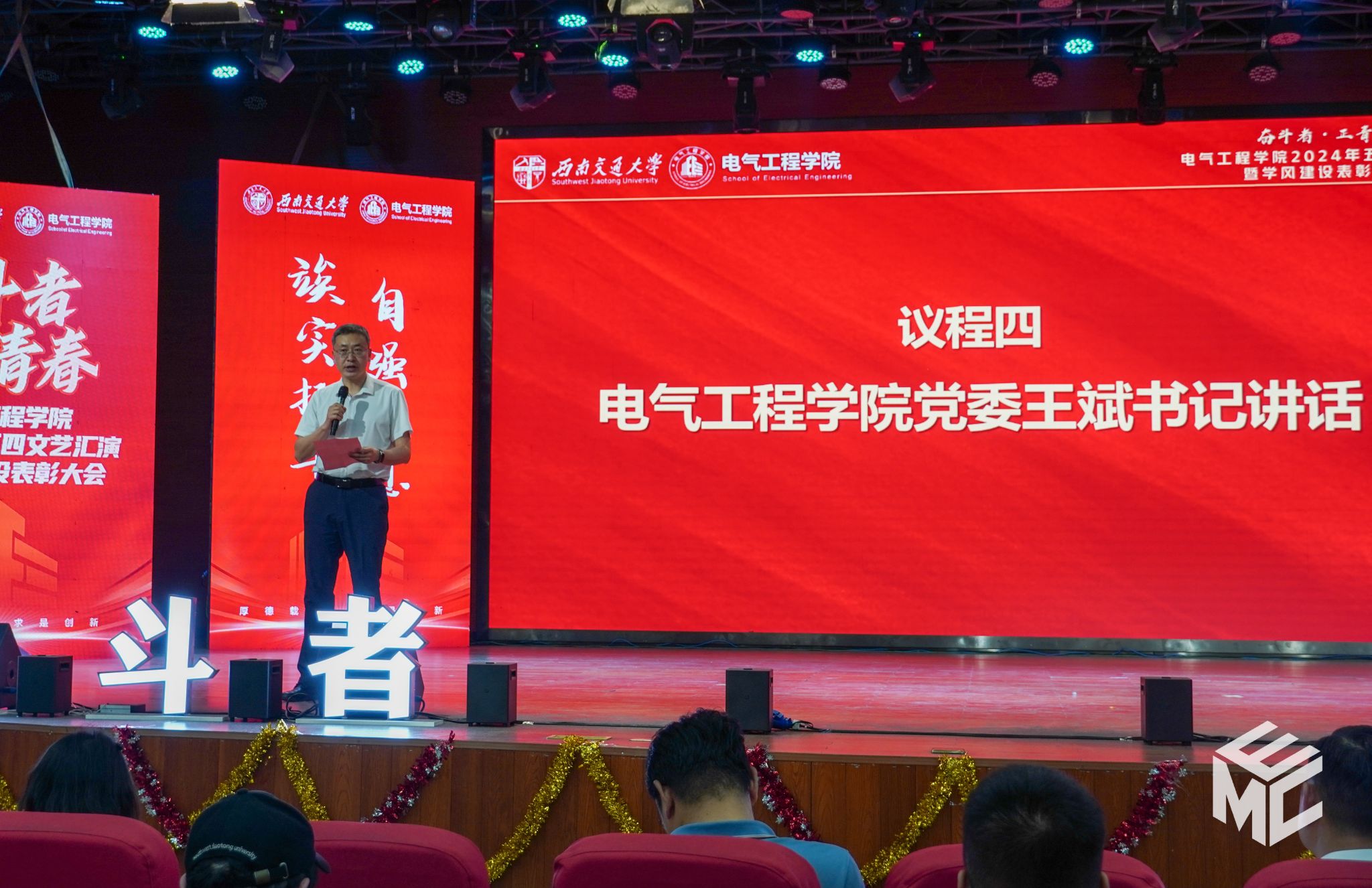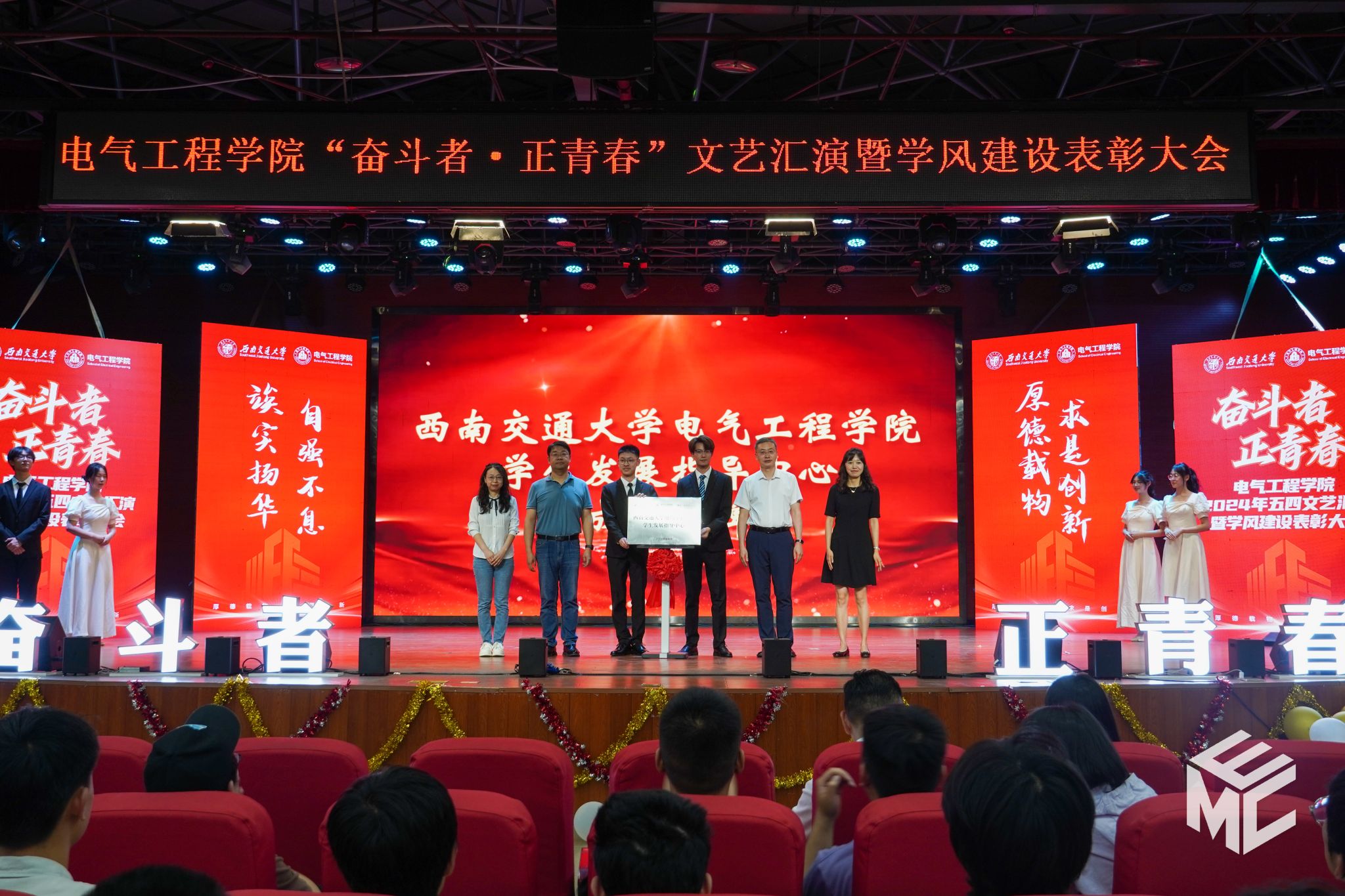 “奋斗者•正青春”2024年五四文艺汇演暨学风建设表彰大会在犀浦校区大学生活动中心如期举行。西南交通大学团委书记武俊,党委学生工作部副部长邢晓鹏,教务处副处长刘鎏,招生就业处对外联络科科长董鹏飞,Fun88乐天堂官网