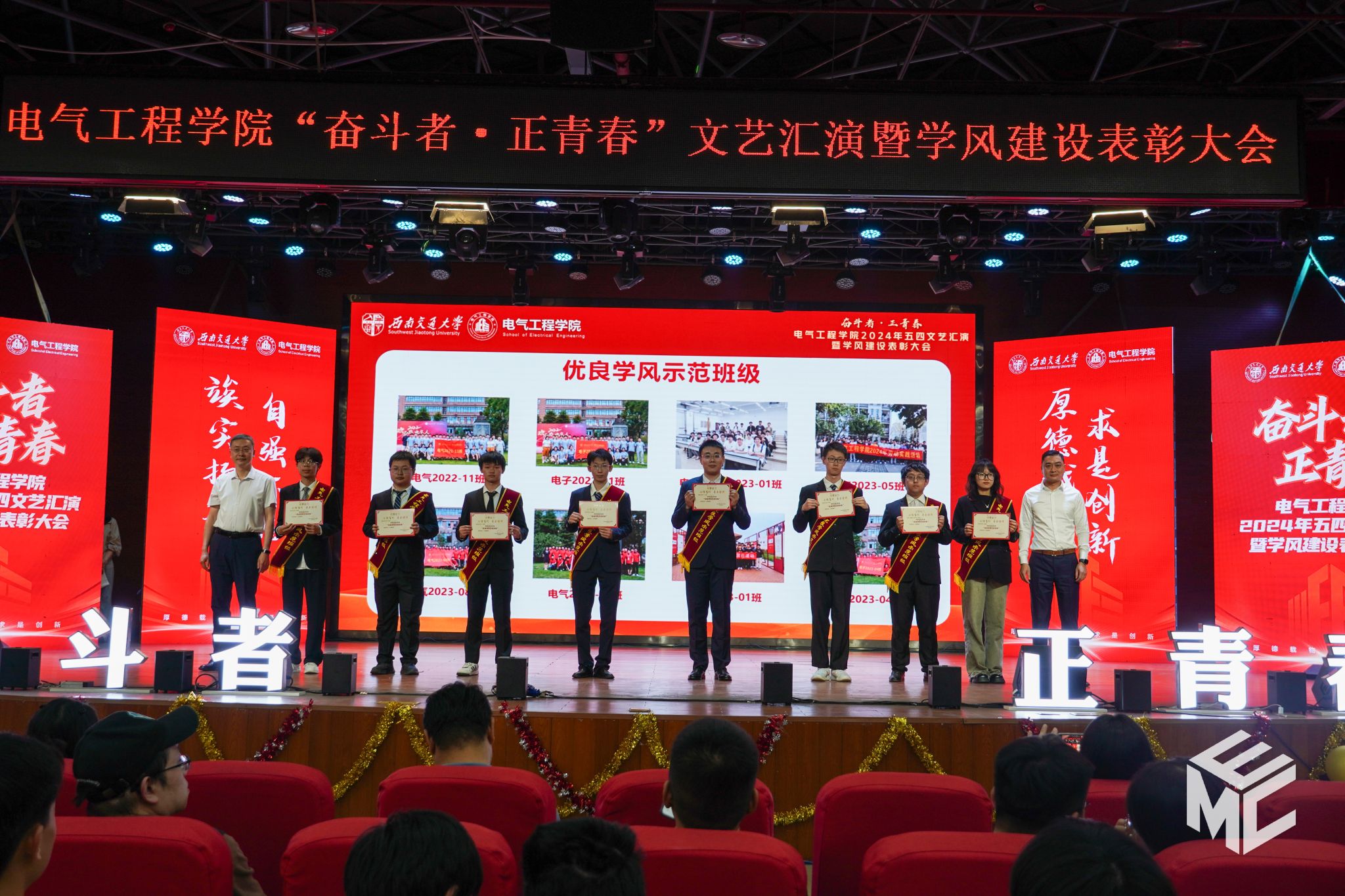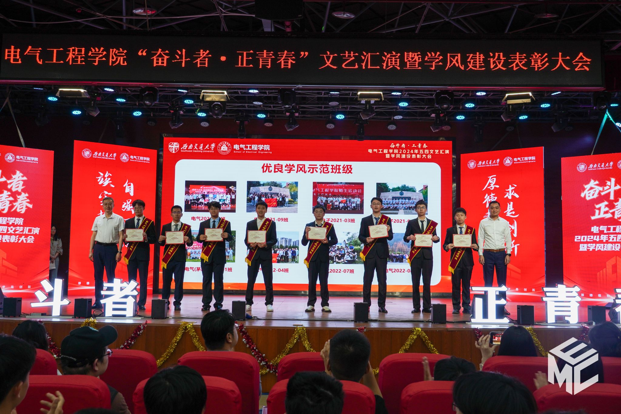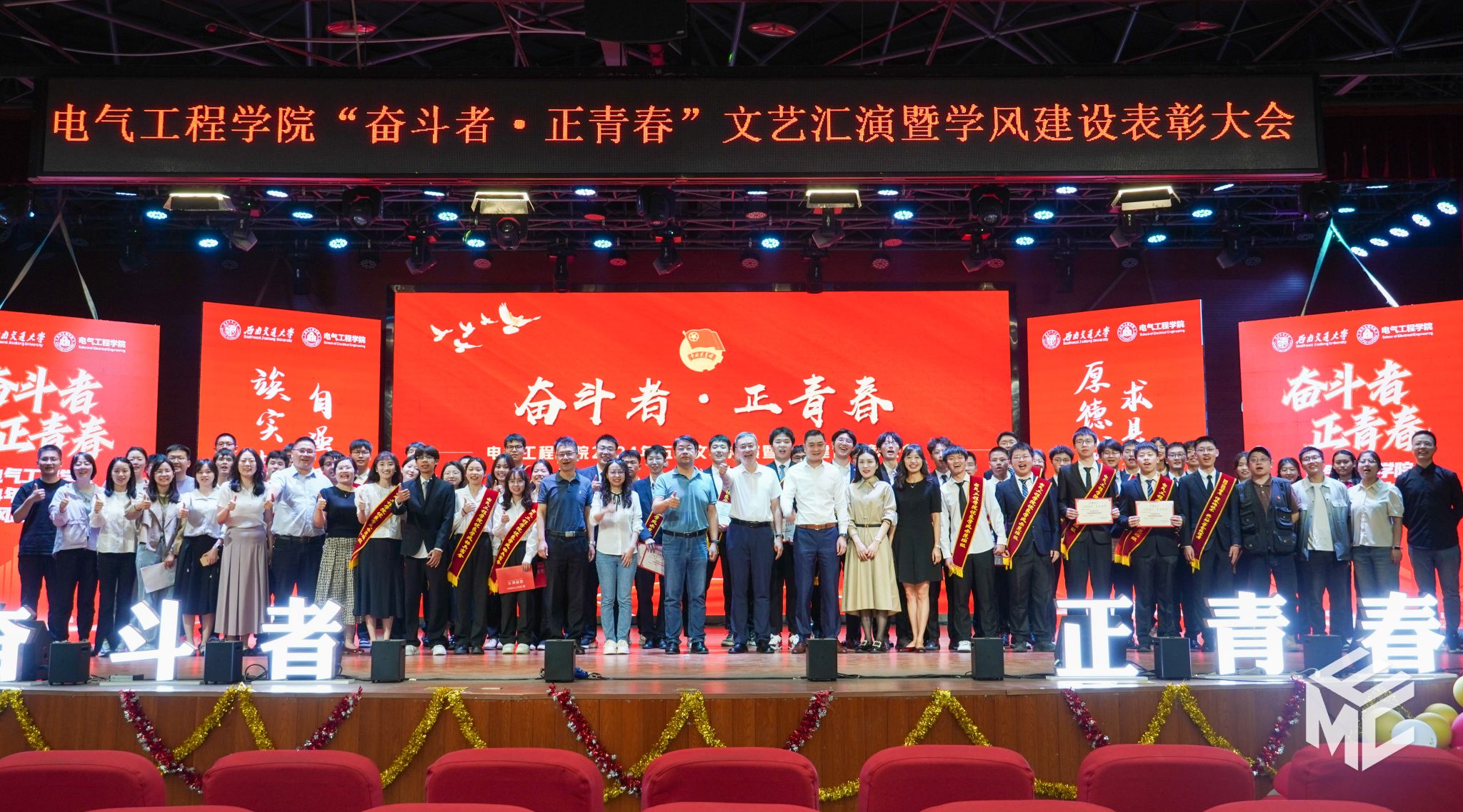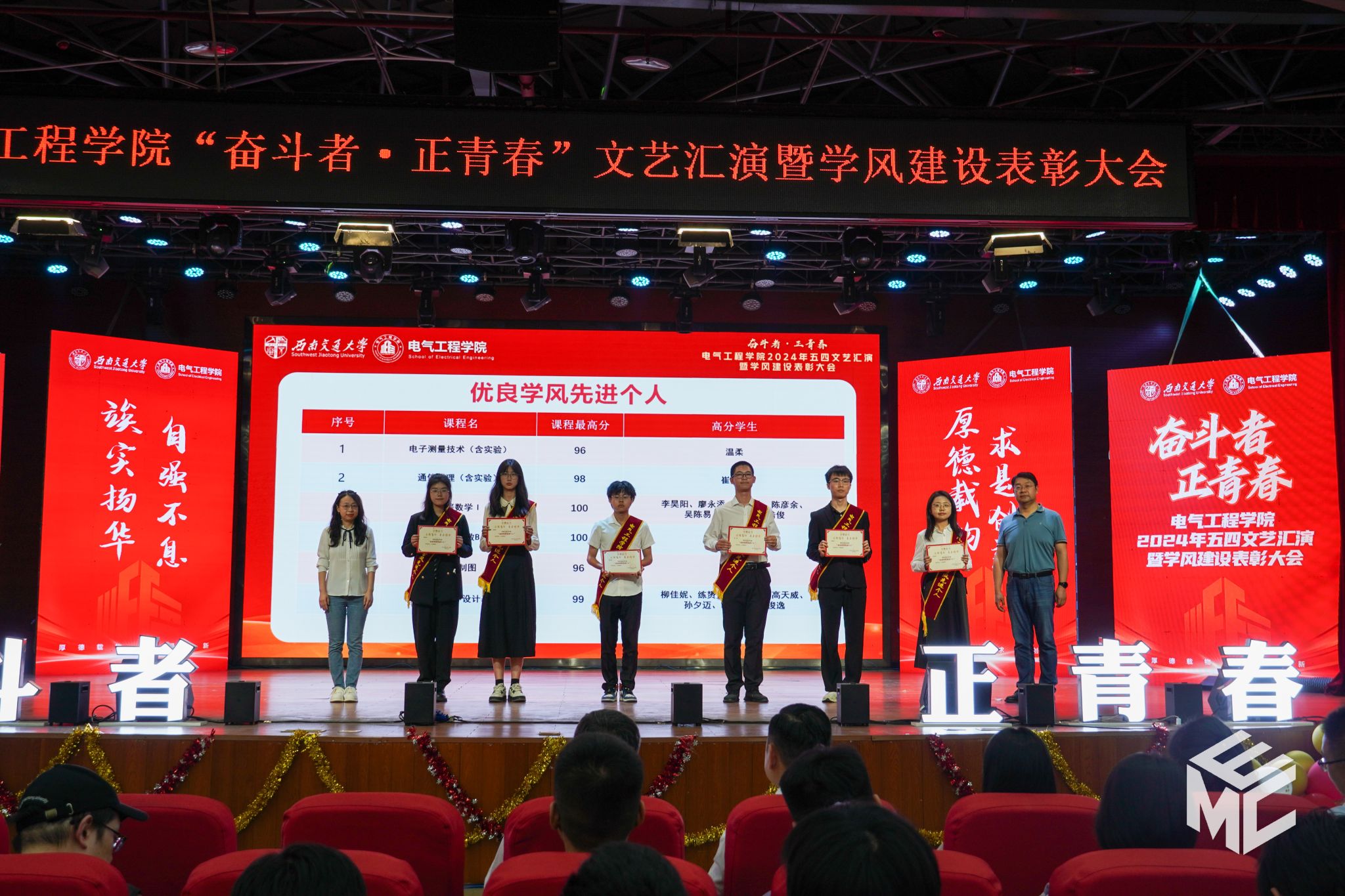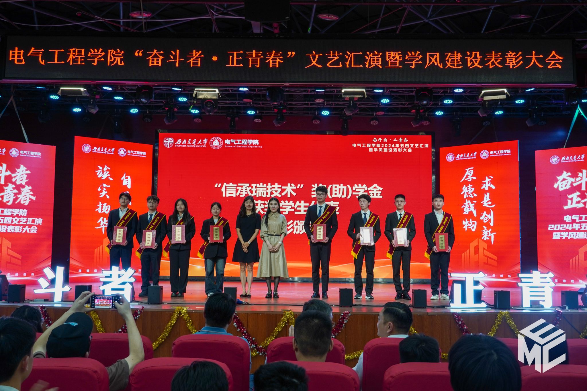 “奋斗者•正青春”2024年五四文艺汇演暨学风建设表彰大会在犀浦校区大学生活动中心如期举行。西南交通大学团委书记武俊,党委学生工作部副部长邢晓鹏,教务处副处长刘鎏,招生就业处对外联络科科长董鹏飞,Fun88乐天堂官网