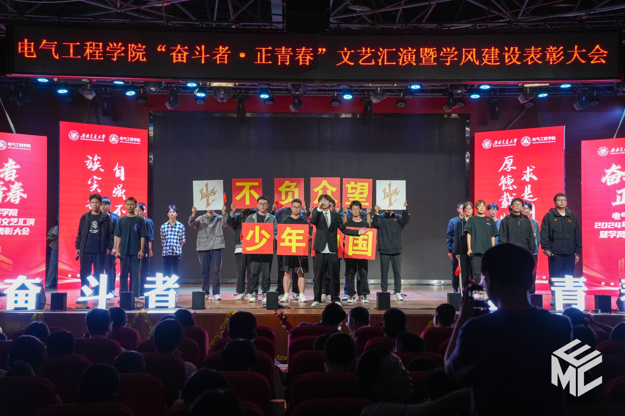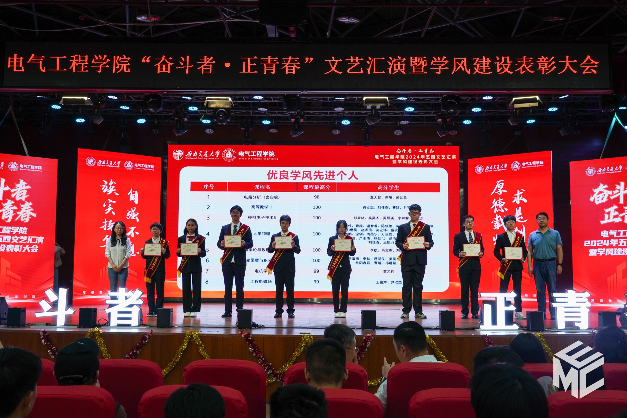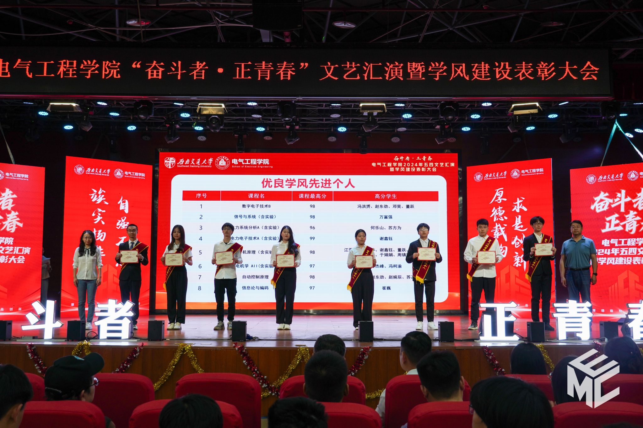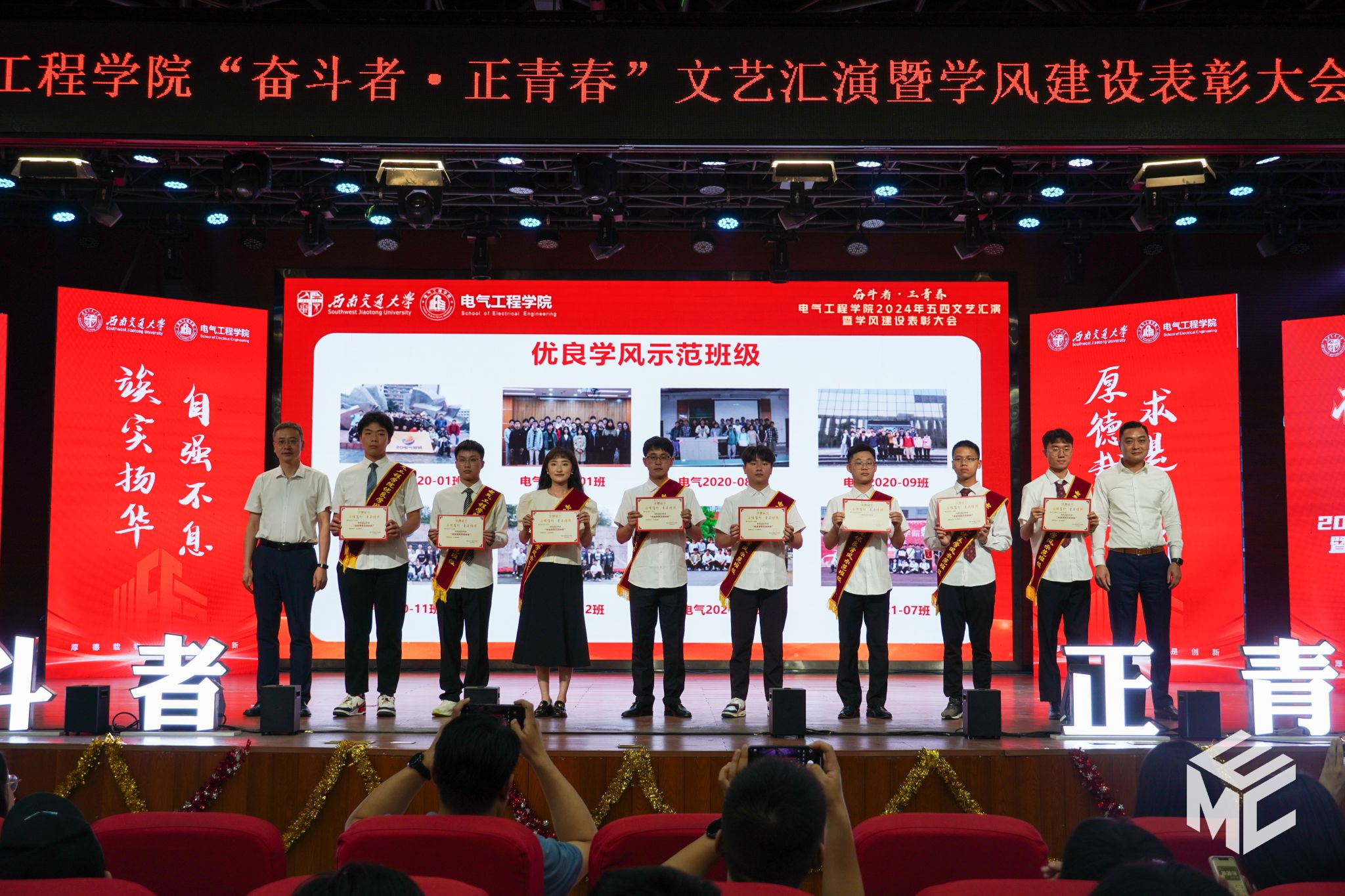 “奋斗者•正青春”2024年五四文艺汇演暨学风建设表彰大会在犀浦校区大学生活动中心如期举行。西南交通大学团委书记武俊,党委学生工作部副部长邢晓鹏,教务处副处长刘鎏,招生就业处对外联络科科长董鹏飞,Fun88乐天堂官网