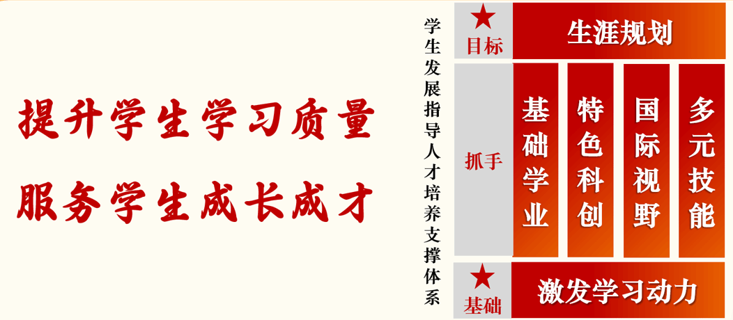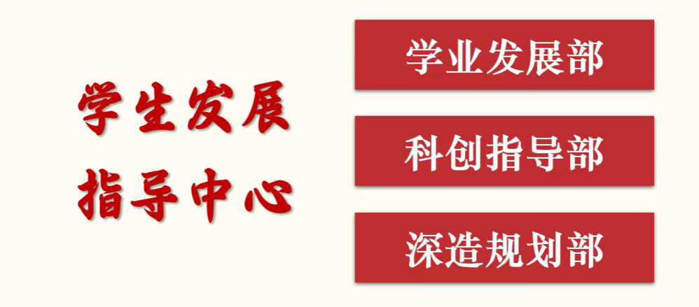 该中心隶属Fun88乐天堂 团委,以“提升学生学习质量,服务学生成长成才”为工作理念,构建了以“激发学习动力”为基,以“基础学业”、“特色科创”、“国际视野”、“多元技能”为柱,以“生涯规划”为梁的“一基四柱一梁”的学生发展指导人才培养支撑体系。