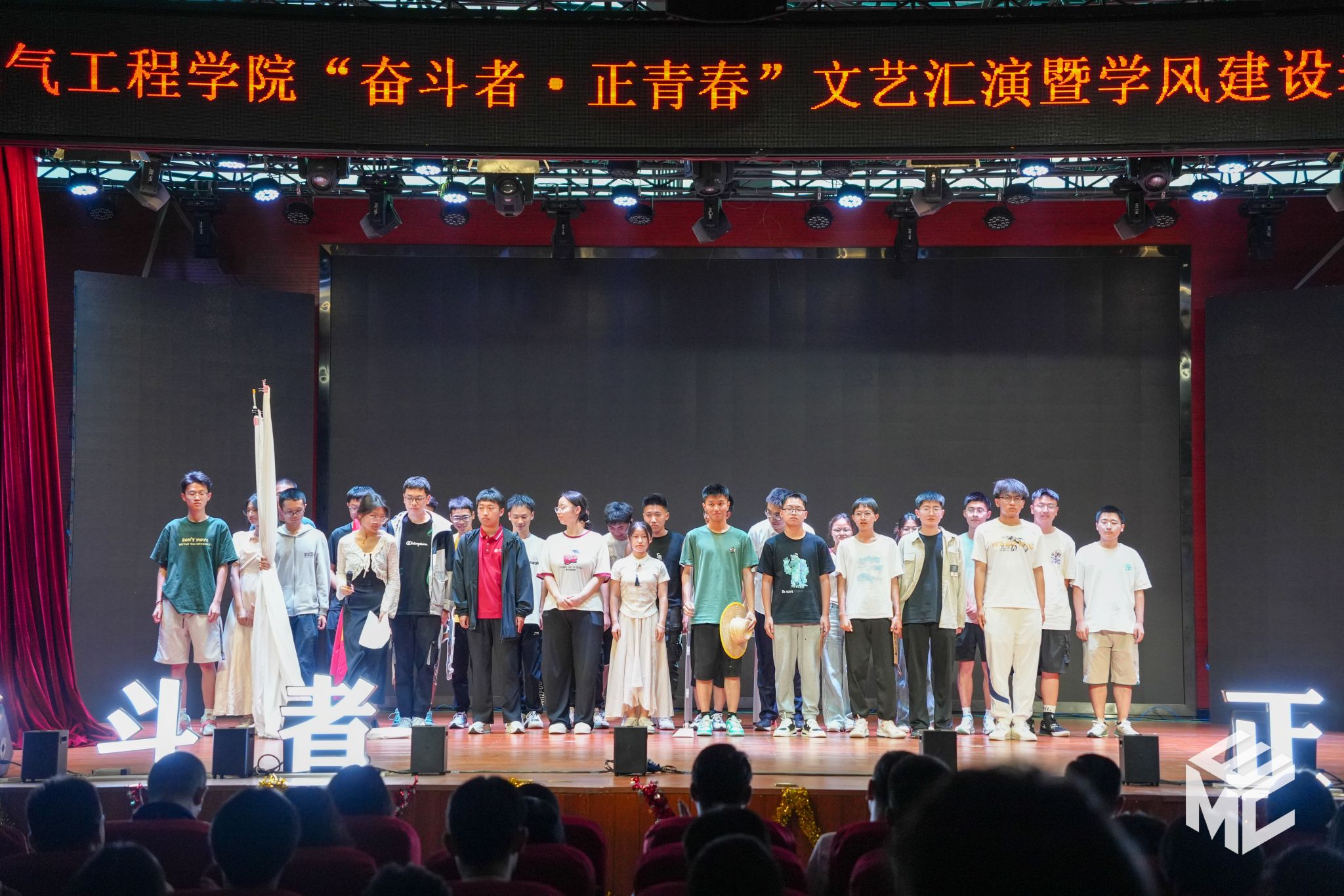 党委副书记谢力、王轶,信承瑞技术有限公司总裁金良赞,信承瑞周钗妹千万光彩基金会理事长林婷婷等出席晚会。2023级班导师及全体辅导员与同学们齐聚一堂,共同参加本次文艺汇演暨表彰大会。