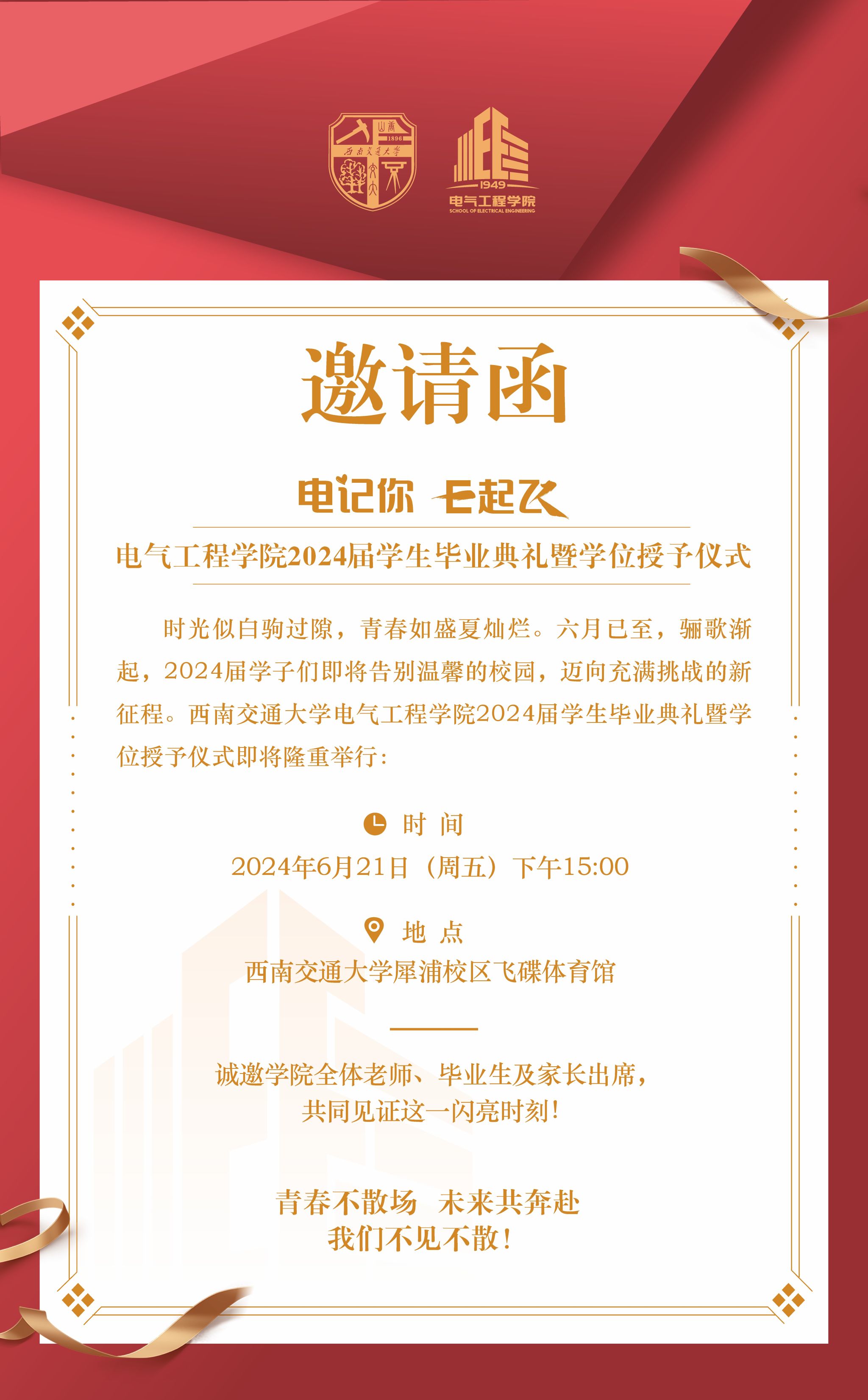 Fun88乐天堂-乐天堂app-乐天堂官网 2024届学生毕业典礼暨学位授予仪式邀请函