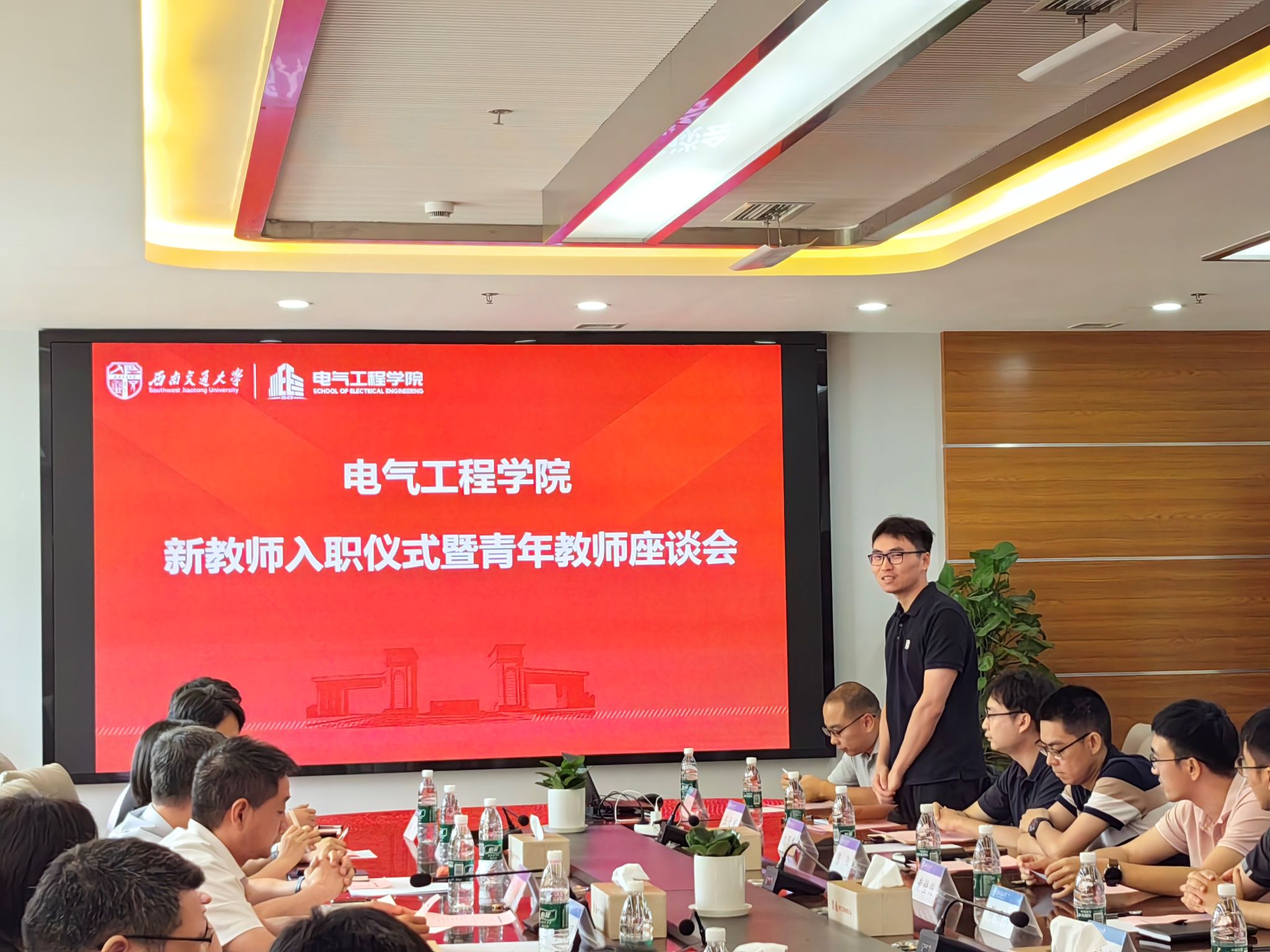 参会新教师简单介绍了自己的基本情况,大家纷纷表达了自己加入Fun88乐天堂 的喜悦心情,也表达了对未来教学科研工作的憧憬和压力。每位新教师随后佩戴上校徽,自此成为西南交大的一员,戴上校徽,也将交大人、电气人的身份深深嵌入心底。