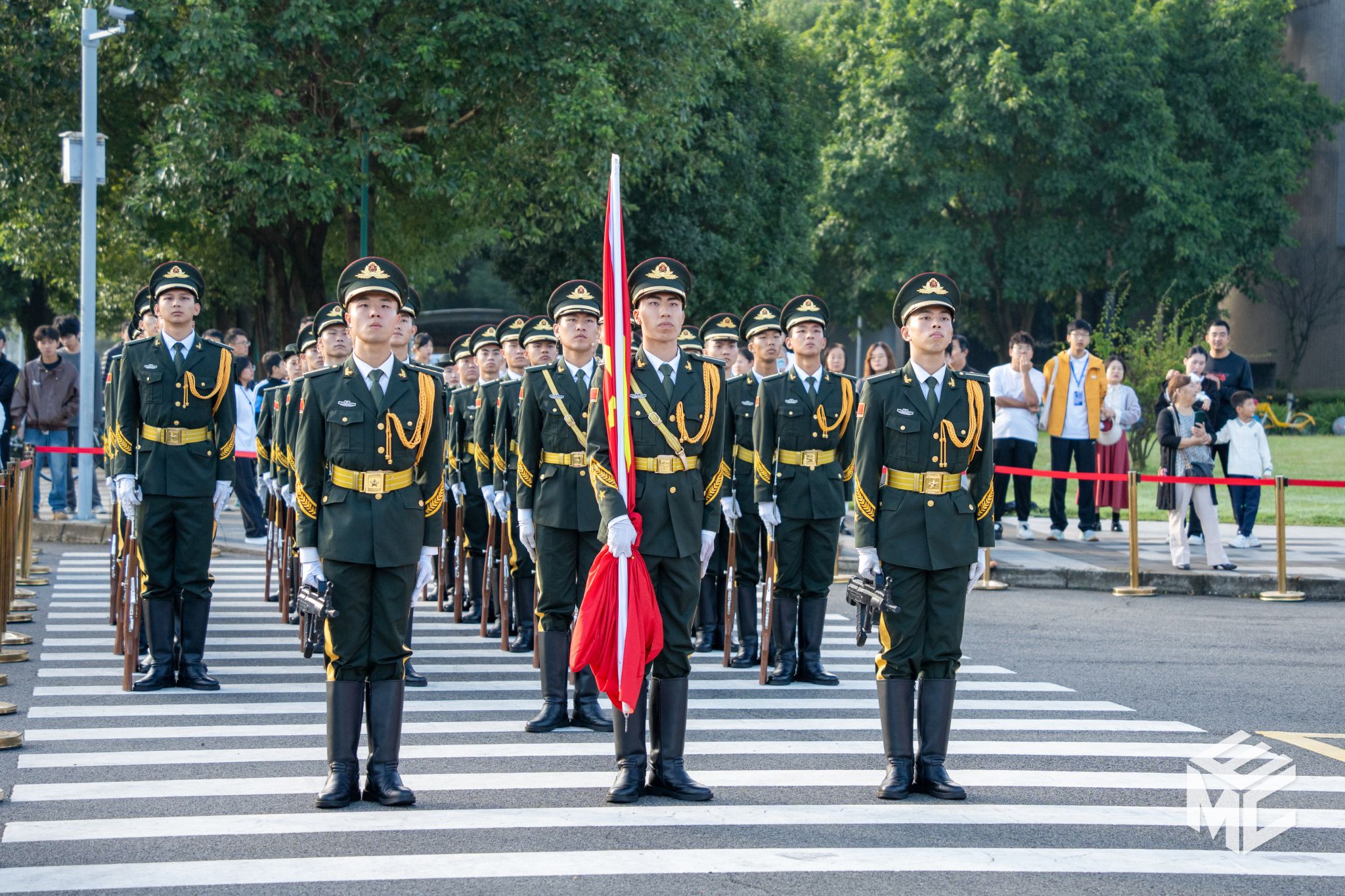升国旗仪式结束后,2024年5月15日(校庆日)天安门广场升挂的国旗在学校国旗护卫队的护送下入场。观礼方阵中,Fun88乐天堂 师生满怀崇高敬意,轻柔触摸国旗,并簇拥在这面具有特殊意义的国旗四周合影留念。