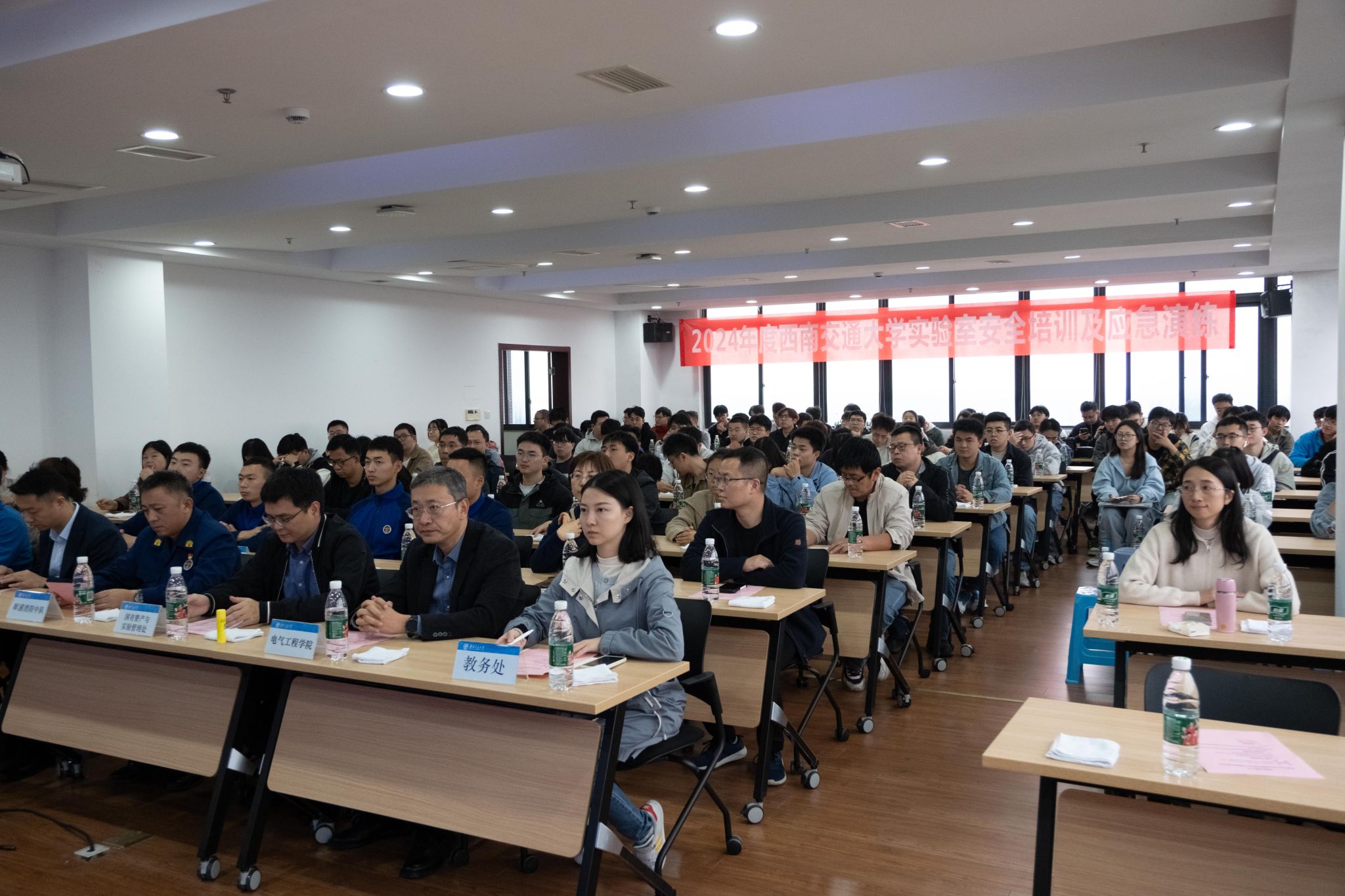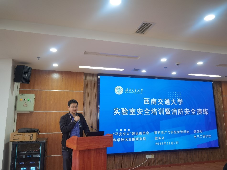 在第33个全国消防日来临之际,为进一步增强师生的实验室安全意识和应急处置能力,构建平安校园,11月7日下午,由校长办公室、国有资产与实验室管理处、保卫处、科学技术发展研究院、教务处联合主办,Fun88乐天堂官网 承办的实验室安全培训暨应急演练活动在犀浦校区电气馆举行。