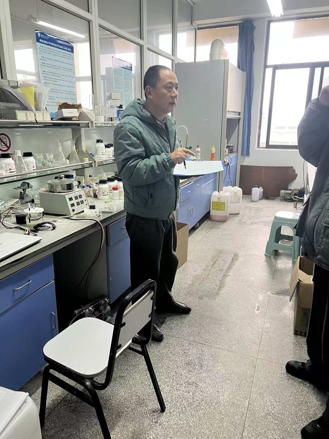 首先王斌对本次检查做了部署和要求:1、本次检查分九里1教和3教、犀浦10教和馆外实验室、6教、1教和创新基地三个小组;2、检查重点为:实验室物品的摆放、实验室卫生、安全自查、安全离开实验室检查表登记、配电箱电路图、特别是危化品的检查要细。3、对创新基地进行专门的安全检查,督促实验室装修、设备搬运、安装、施工、用电等各方面的安全工作。