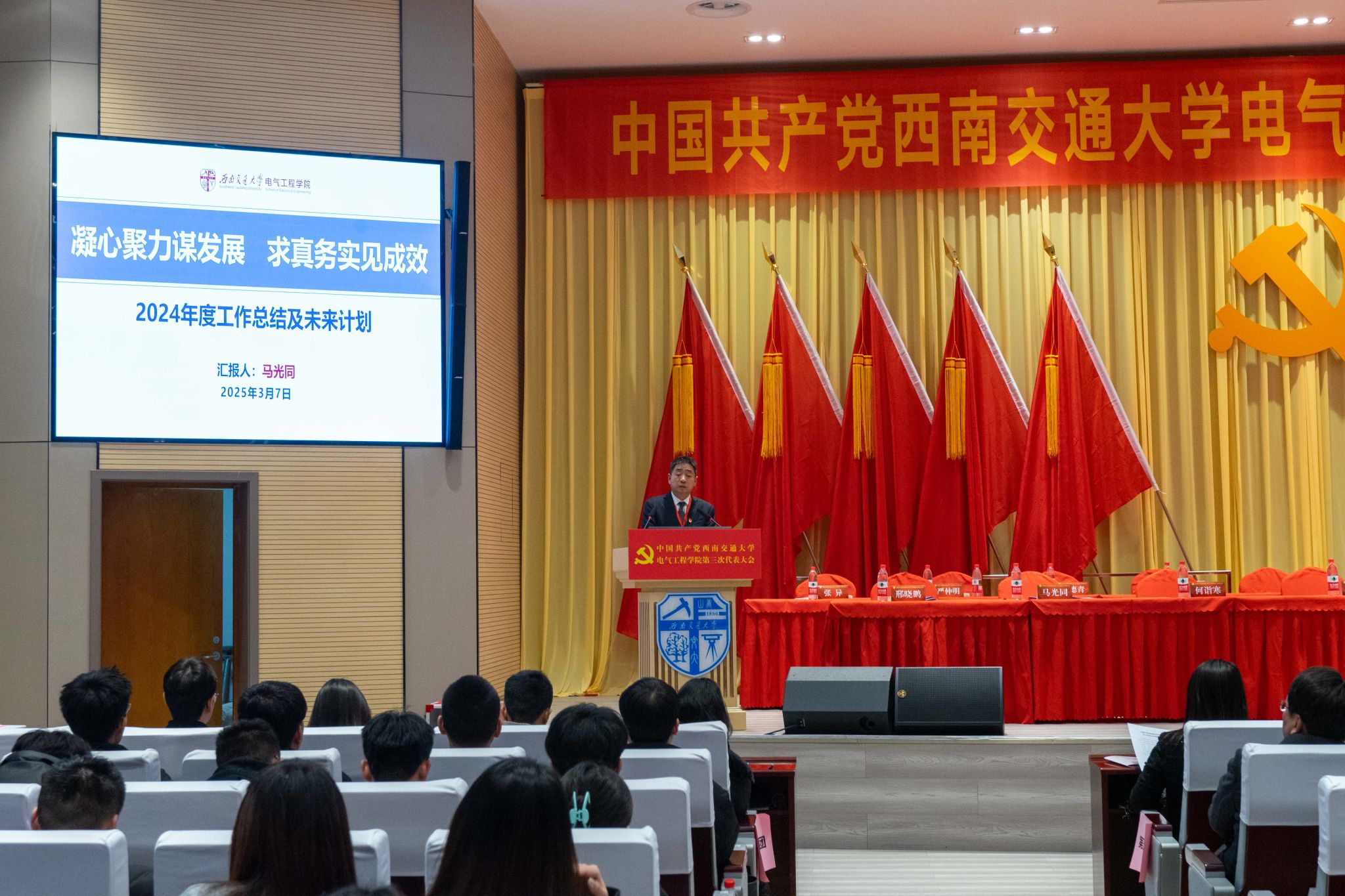 在监票计票期间,院长马光同就Fun88乐天堂 工作情况进行报告。报告指出,2024年Fun88乐天堂 坚持党建引领、学科牵引、教学核心、科研驱动、人才支撑,取得了丰硕成果。完成基本任务的同时,Fun88乐天堂 工作亮点突出,成绩斐然。党建工作迈上新台阶,科研奖励再创佳绩,青年人才队伍建设实现新突破。未来,Fun88乐天堂 要推动教育、科技、人才“三位一体”融合发展,布局一批具有战略前瞻性的学科方向,产出一批具有行业代表性的科研成果,培养一批具有广泛影响力的学术骨干,建成一批具有创新支撑力的科研平台,构建面向未来的电气新质人才自主培养体系,推动Fun88乐天堂 高质量发展。