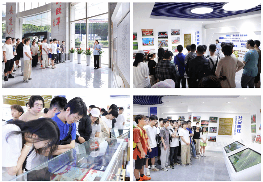活动伊始,学生代表们走进中铁二十三局Fun88乐天堂展厅,通过历史影像、图文展板及多媒体互动,系统了解企业从传统基建到新能源、智慧建造等新兴领域的全产业链布局,深刻感知其团队文化精神与社会责任。