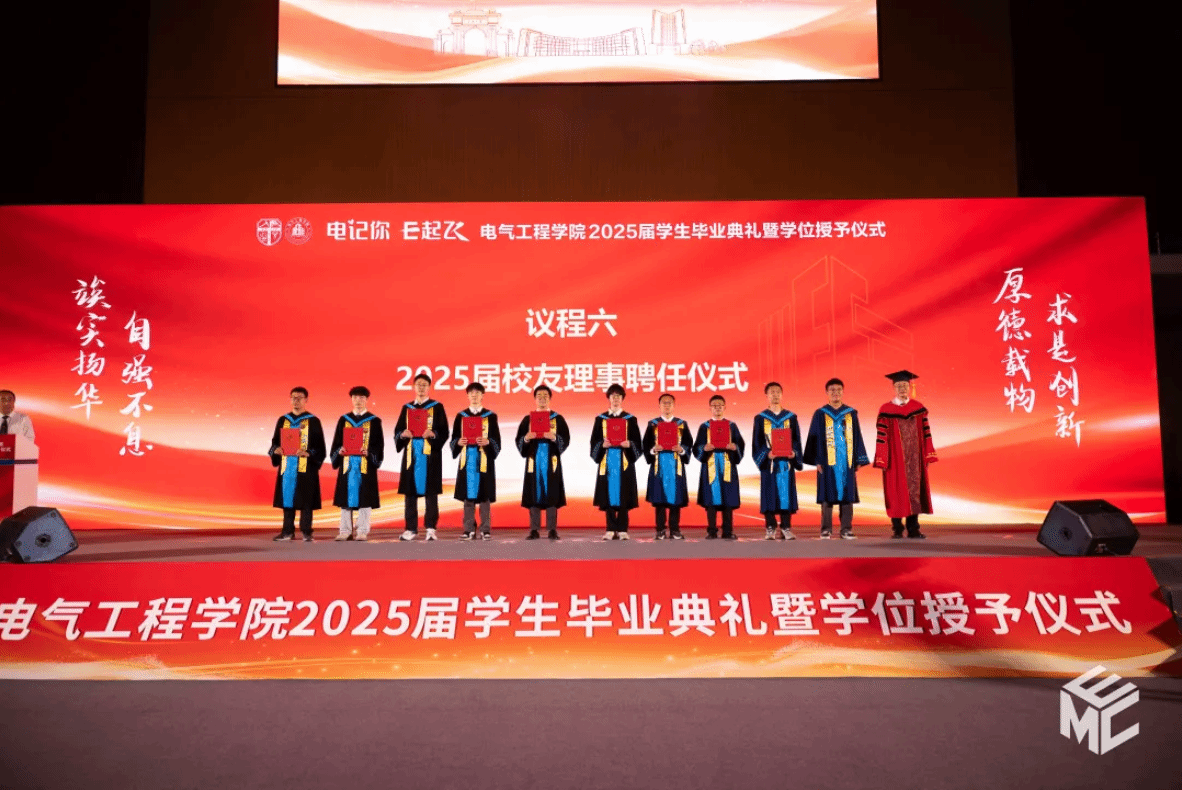 全体师生共同唱响西南交通大学校歌《文轨车书郅大同》,熟悉的旋律再度响起,这不仅是校歌的奏响,更是青春的回响。愿毕业生们带着交大电气人的信心与勇气,在广阔天地中乘风破浪,书写属于自己的精彩篇章!