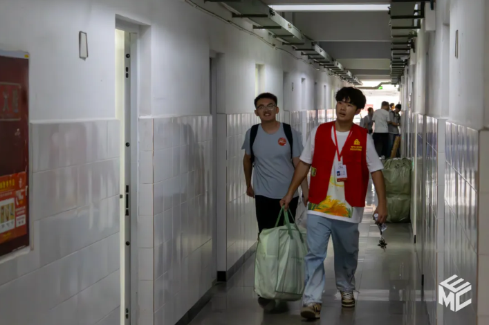 带着鼓鼓囊囊的行李入住崭新的宿舍