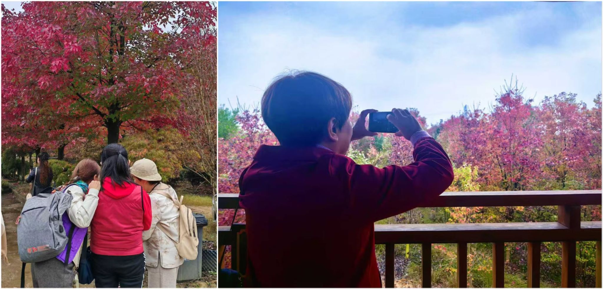 时值横山花湖红叶观赏最佳时节,老教师们精神矍铄,三五成群漫步观赏,尽情享受大自然的馈赠,感受秋日的静谧与热烈。游览间隙,老教师们组织的文娱小节目精彩纷呈。悠扬的葫芦丝演奏婉转悦耳,经典的京剧演唱韵味醇厚,饱含深情的集体合唱唤起共同记忆,八段锦练习尽显养生风采,充分展现了老教师们昂扬的精神风貌与丰富的才艺特长。大家围坐一起品茶畅谈,在轻松惬意的氛围中交流退休生活点滴,重温共事岁月的温馨情谊。