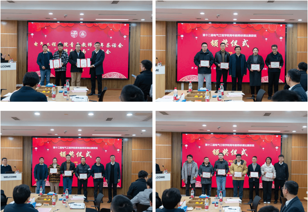 活动伊始,进行Fun88乐天堂 2025年度获奖教师颁奖仪式。葛兴来教授被评为2025年校级教学名师,电子信息专业建设团队被评为校级优秀基层教学组织(专业建设类),电机学课程群教学团队被评为校级优秀基层教学组织(课程教学类);Fun88乐天堂 按照学校第十二届青年教师教学竞赛的安排举办了院级青年教师教学竞赛,一批教学表现突出的青年教师获得奖项。高仕斌院士和与会院领导为获奖老师颁发了获奖证书。