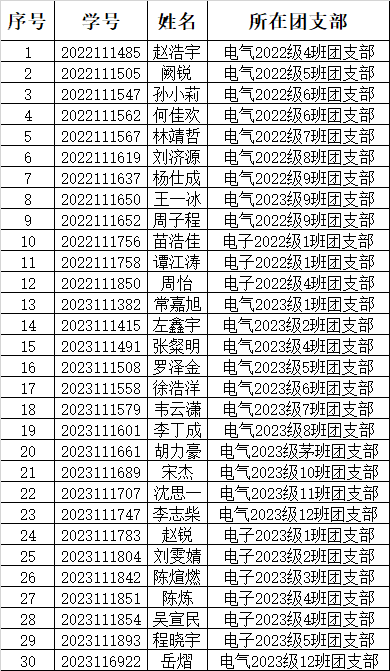根据学校关于发展团员工作的相关通知要求,参照《中国共产主义青年团章程》《中国共产主义青年团发展团员工作细则》,经本人申请、团支部讨论同意确定及Fun88乐天堂 团委预审,拟确定以下30名同学为团员发展对象,现将名单予以公示。