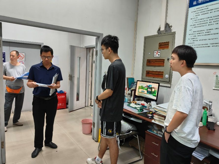 本次检查按照《高等学校实验室安全检查项目表》2024的要求,重点检查内容包括:1、实验场所、场所环境:实验场所张贴安全信息牌、具备合理的安全空间布局、消防通道通畅,公共场所不堆放仪器和物品;实验室水、电、气管线布局合理,安装施工规范等。2、卫生与日常管理:实验室分区应相对独立、实验室环境应整洁卫生有序布局合理、实验室有卫生安全制度;3、用电、用水基础安全:实验室配电容量、插头插座与用电设备功率须匹配,不得私自改装、电源插座须有效固定、电气设备应配备空气开关和漏电保护器、不私自乱拉、乱接电线、电缆,禁止多个接线板串接供电,接线板不宜直接置于地面、禁止使用老化的线缆、花线、木质配电板、有破损的接线板,电线接头绝缘可靠,无裸露连接线,穿越通道的线缆应有盖板或护套,不使用老国标接线板、插座。大功率仪器(包括空调等)使用专用插座、电器长期不用时,应切断电源;配电箱前不应有物品遮挡并便于操作,周围不应放置烘箱、电炉、易燃易爆气瓶、易燃易爆化学试剂、废液桶等;配电箱的金属箱体应与箱内保护零线或保护地线可靠连接;布置合理,运行正常;4、化学安全:危化品的购置、台账、保管、使用等。